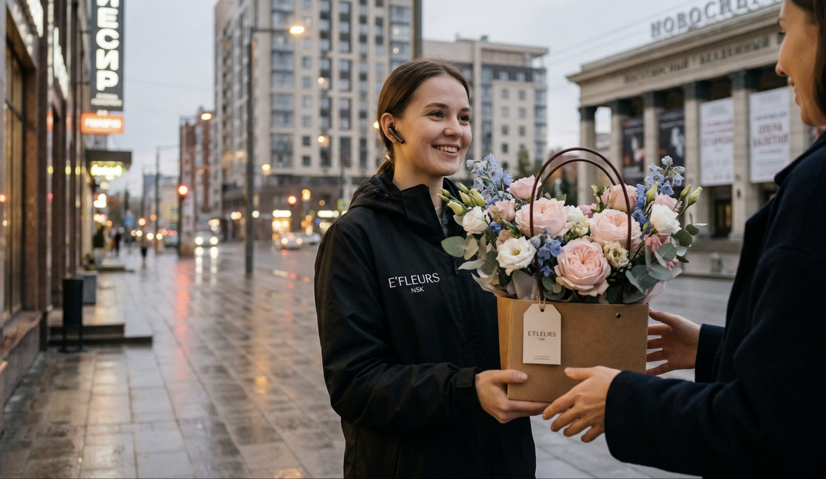 В Новосибирске, с его ритмом жизни, курьеры цветочных салонов часто проявляют чудеса изобретательности, чтобы вручить букет в офисе, ресторане или даже на улице, если получатель находится в движении.
